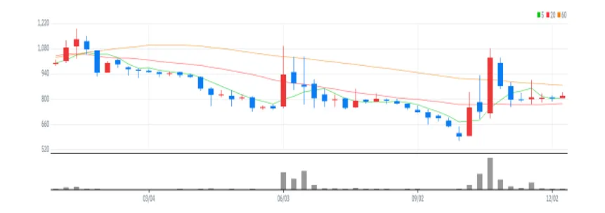 현재 일봉상 이평선 정배열 상태로 현재 종가가 5일선 보다 위입니다 밑으로 초단기 5일, 10일선 제외 단기지지선 20일선(가격804) 및 지지선 120일선(가격777)이 있습니다