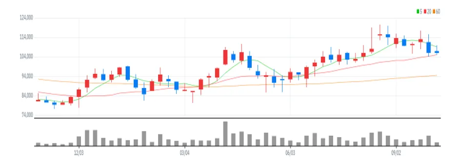 | 52주 변동폭 | 120,500 ~ 77,300 |