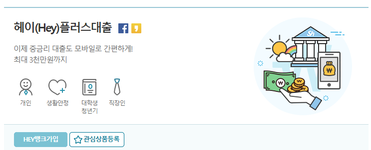 안녕하세요 오늘은 여러 대출 상품중에서도 간단하게 모바일로 신청가능한 수협은행의 서민대출 상품에 대해 자격 한도, 금리, 서류 등 조건 한번 알아보려고 해요 바로 수협 헤이 플러스 대출 입니다 헤이뱅크 어플 가입만 한다면 누구나 모바일로 간편하게 신청이 가능한 상품입니다.
