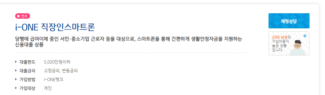 개인에 따라서 금리 및 한도의 차이가 있는 상품이에요 (재직 및 소득,개인 신용 평점,대출 현황 등에 따라 차등 적용 되는 상품 입니다) 또한 개인 별로 대출 자체가 실행 되지 않는 경우도 있으니 알아두시면 되겠습니다(회생,미납,파산등으로 인한 금융기관 등록된 자)연체시에는 3% 가산이자가 추가로 붙고 장기미납의 경우 계약 전 모든 원금을 다 갚아야 하는 불이익이 생길수 있다고 하니 연체는 주의하시는 게 좋겠죠