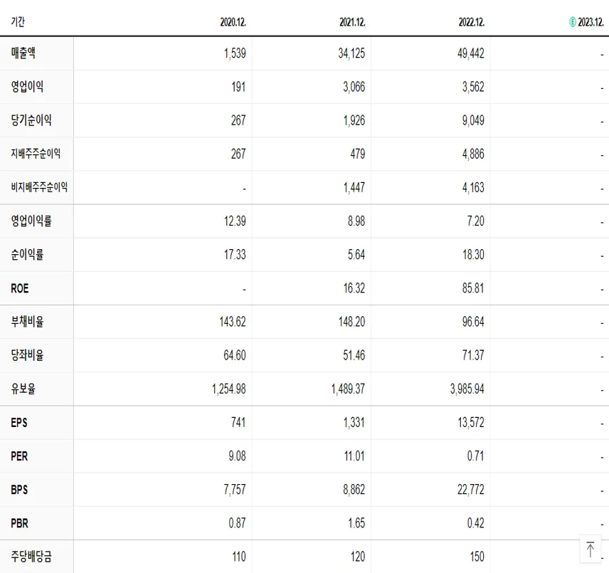 | 매출 | 증가 34125억 => 49442억 |